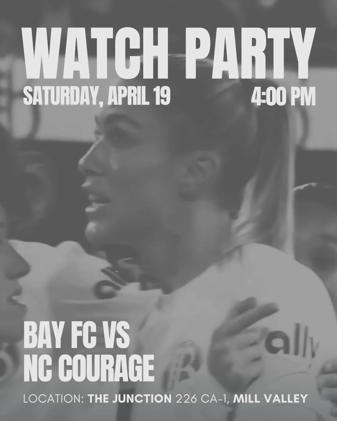 Get ready for Saturday, April 19th! Join us at The Junction Mill Valley to watch BAY FC take on NC COURAGE. Kickoff is at 4pm! Co-Hosted by The Twelfth - Marin’s First Women’s Sports Bar & The Junction Beer Garden